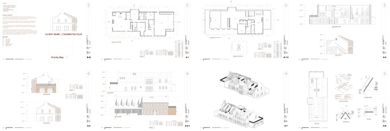 The Faarmsted Plus Starter Plans include the following: Floor plans with accurate dimensions, exterior elevations and building sections.